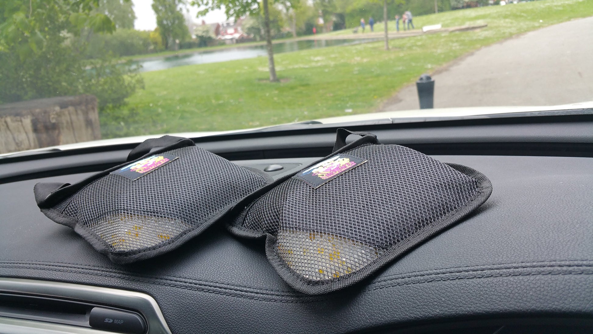QUALITY SILICA FILLED DEHUMIDIFIER BAGS . Silica is generally recognized as the best chemical for Dehumidifiers The Damp Eater Has been designed and assembled in The United Kingdom where we have one of the most unpredictable climates for damp in the world. This Model we have supplied a special size storage bag ,You can store in your door pocket so as to save the time between charging,as the damp eater is a dynamic moister eliminator as soon as it comes in contact with the atmosphere ,just get into the habit of leaving it on your dashboard when you park up for the night.The Damp eater is also fitted with a unique carrying handle for storage or to place in an additional place has it has many usages. in the home ,camping ,boating ect .You will know when it needs charging YOU WILL SEE THE COLOUR CHANG IN THE WINDOW .Do not worry that the bag will break,they are the same bags used to carry shot lead by deep sea divers around the world.So are virtually indestructible,you can CHARGE in a microwave,for 6min ,and the Damp Eater is ready for action again, we have also made a Velcro tot to remove the gel for quicker and more thorough drying,